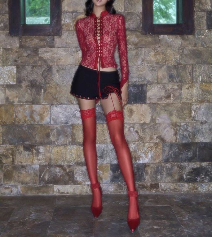Calze autoreggenti rosse