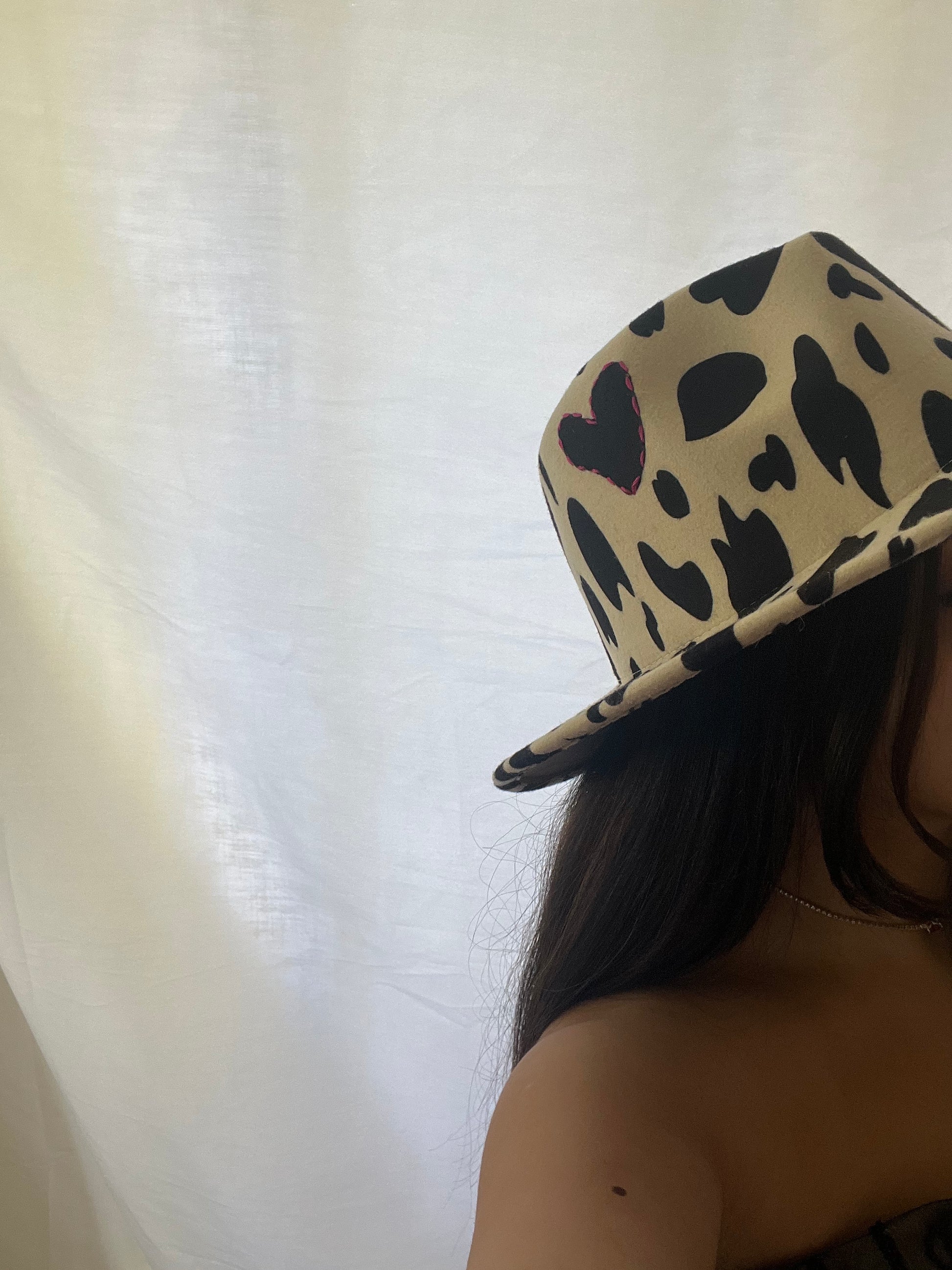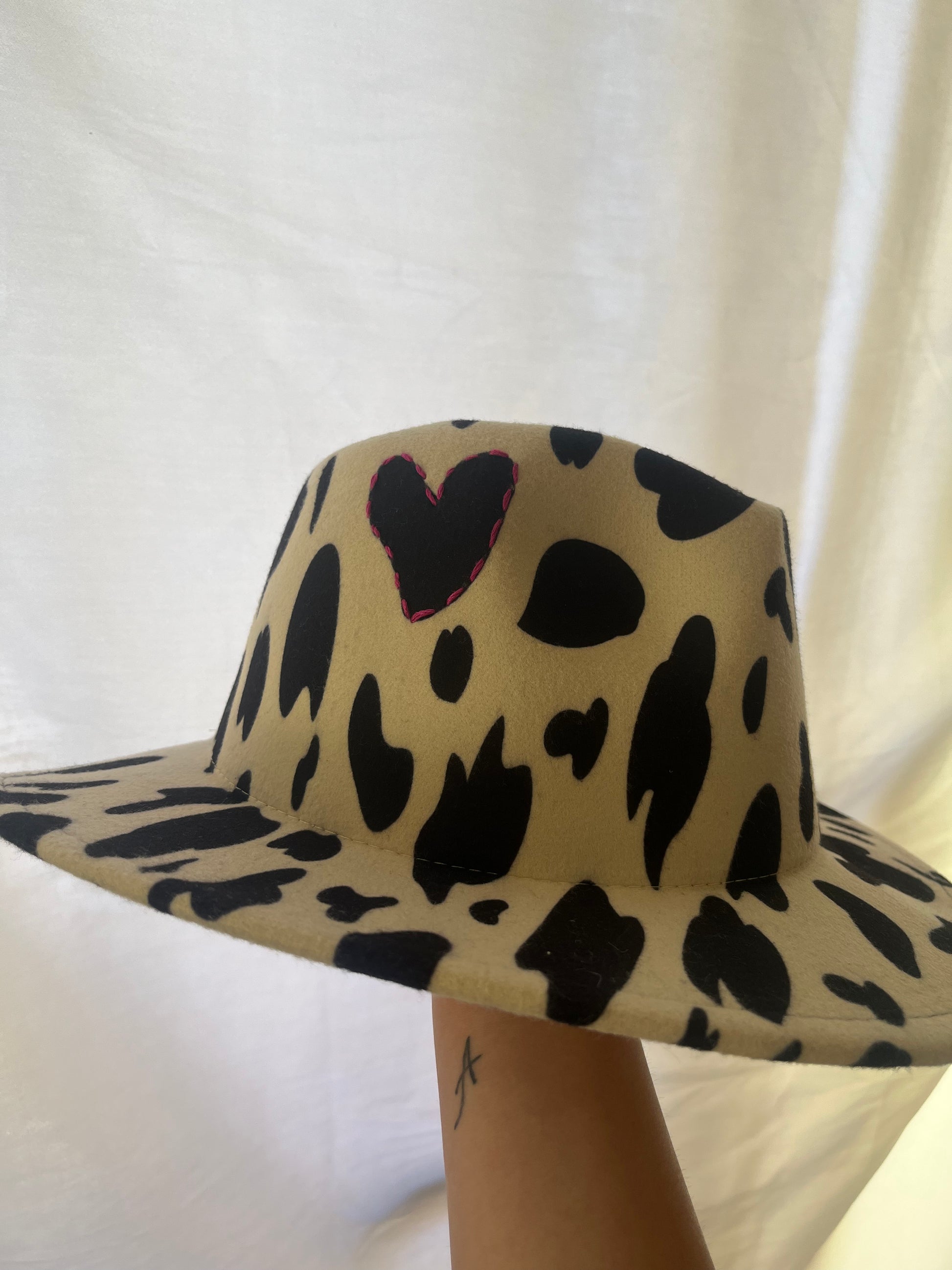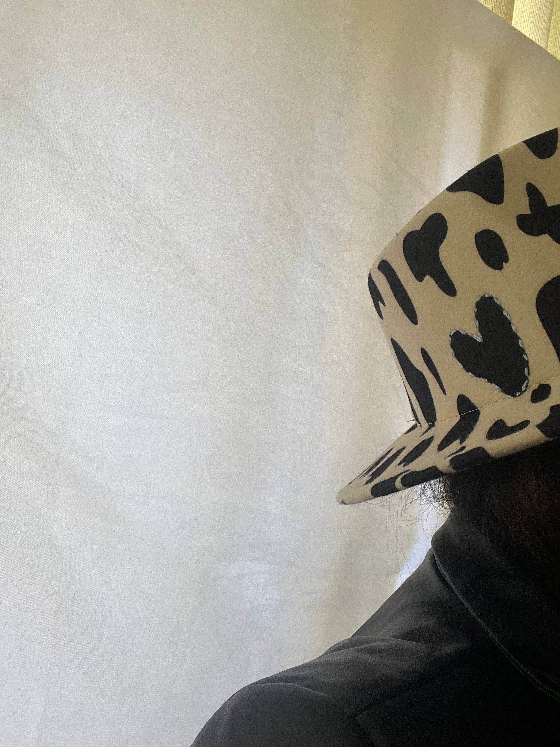 Cappello fedora cow, motivo mucca a macchie. Circonferenza 58 cm. Dettaglio realizzato a mano disponibile in due varianti: