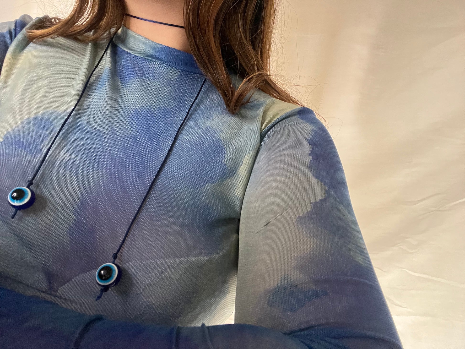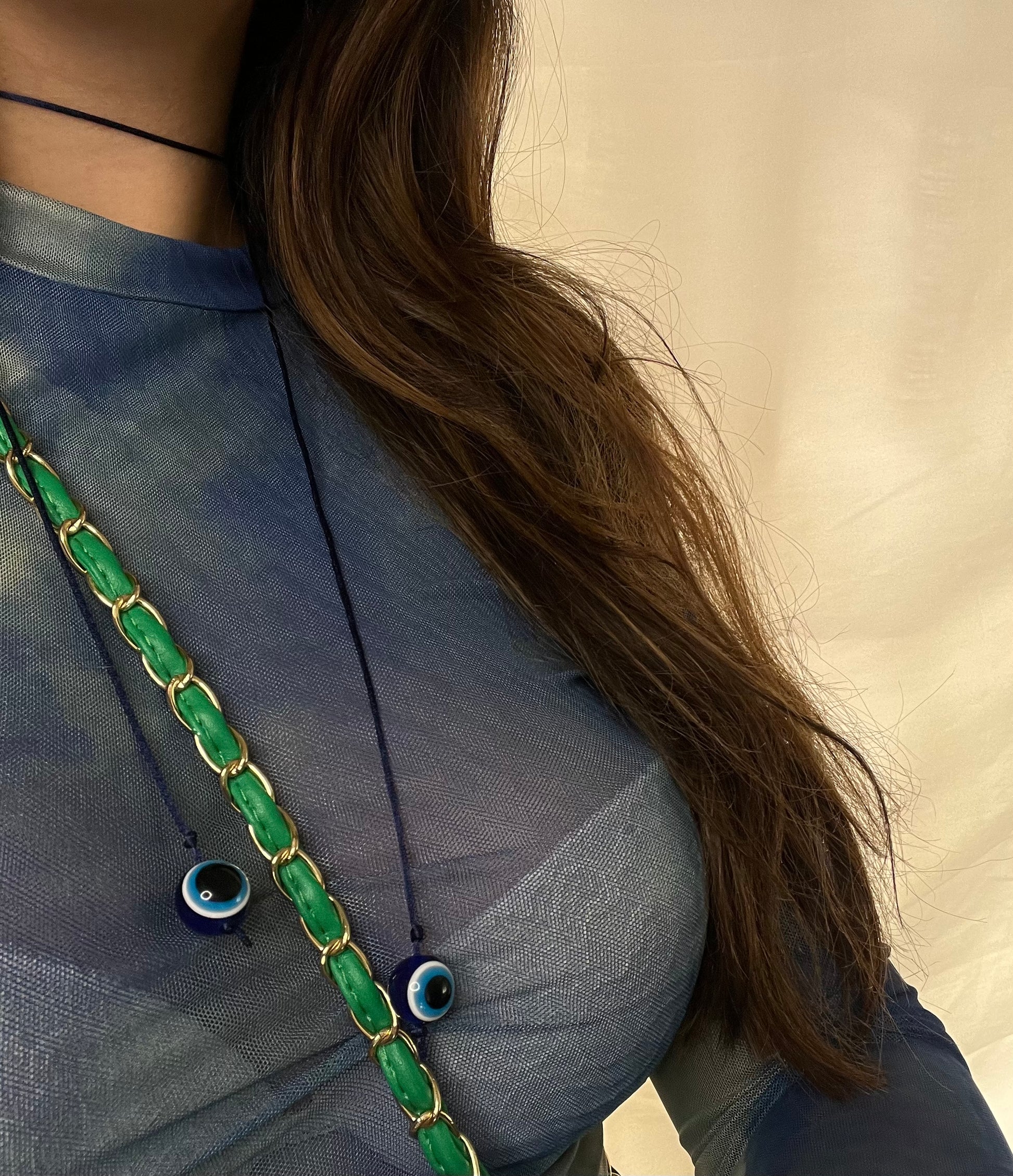 Choker double eyes - filo cerato blu scuro con ciondoli a forma di occhio