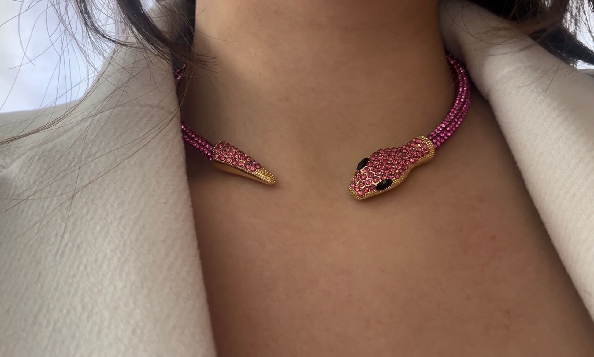 Choker snake disponibile sia fucsia, sia bianco.