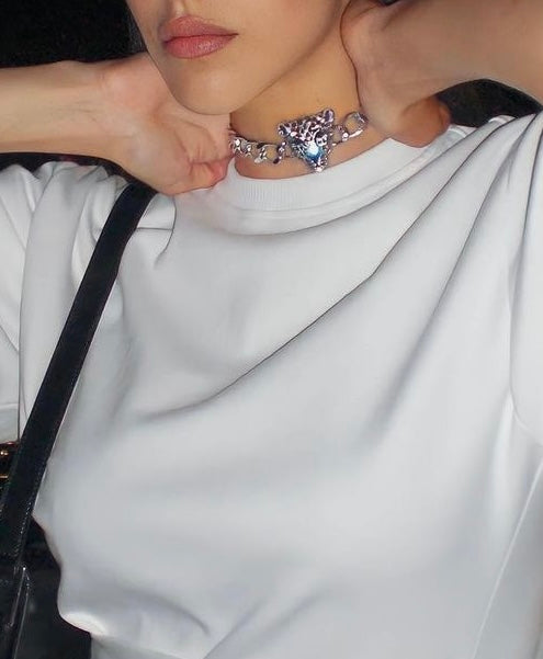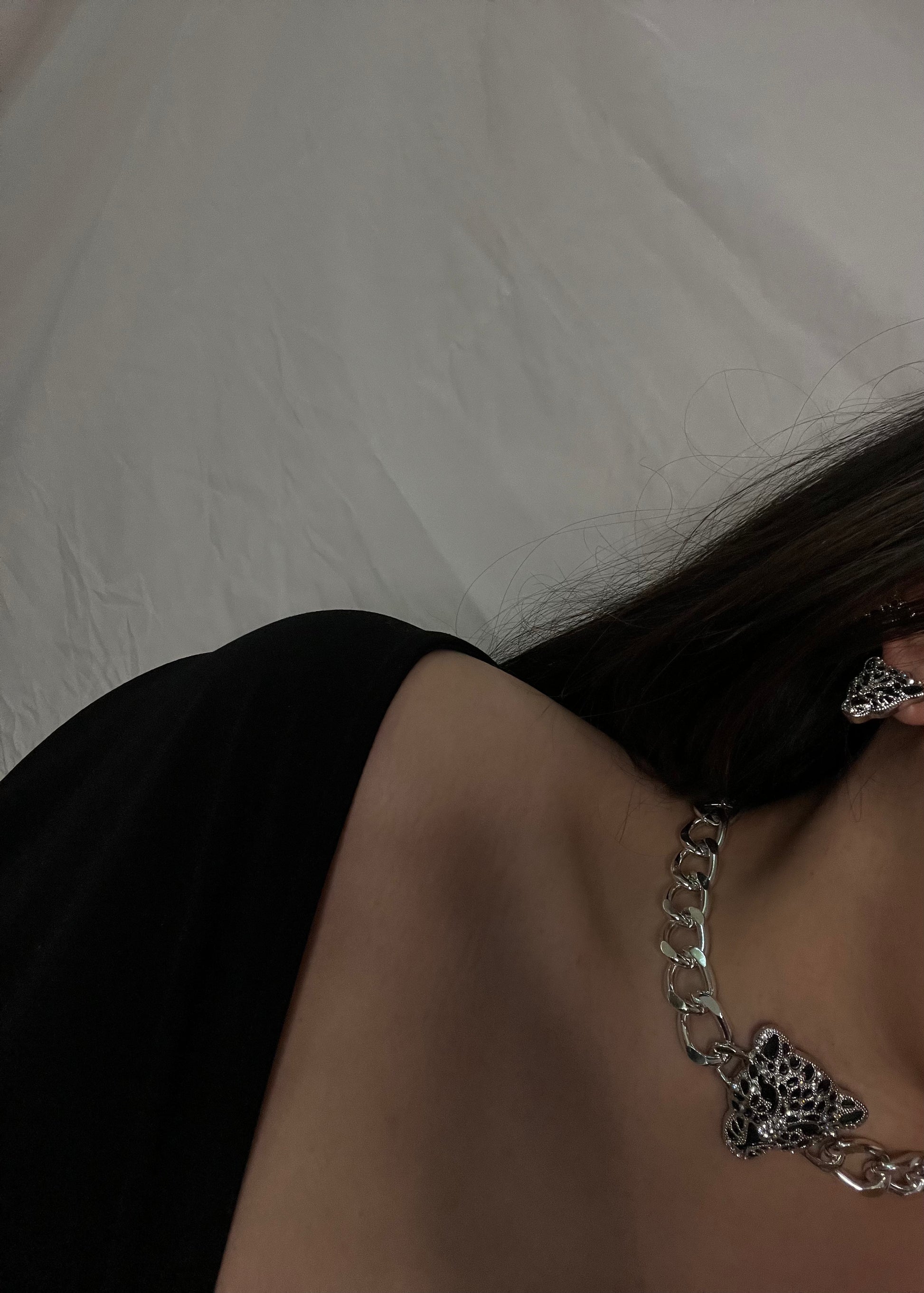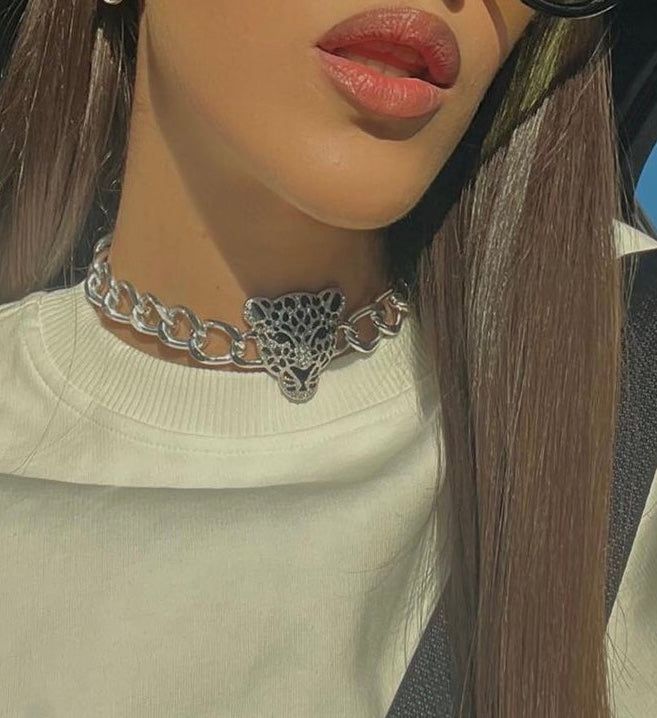 Choker “roar”, catena con ciondolo grande centrale a forma di leone.