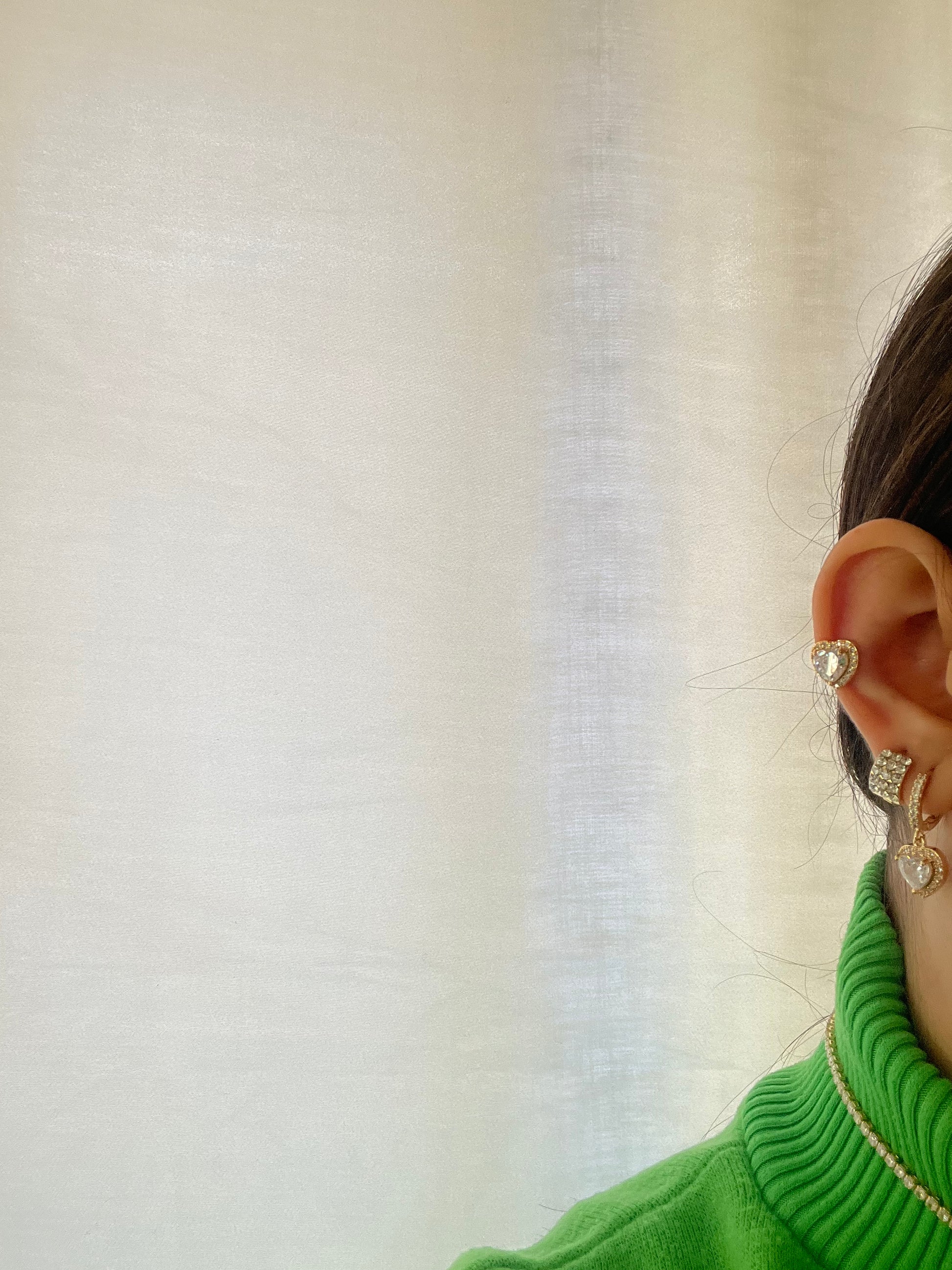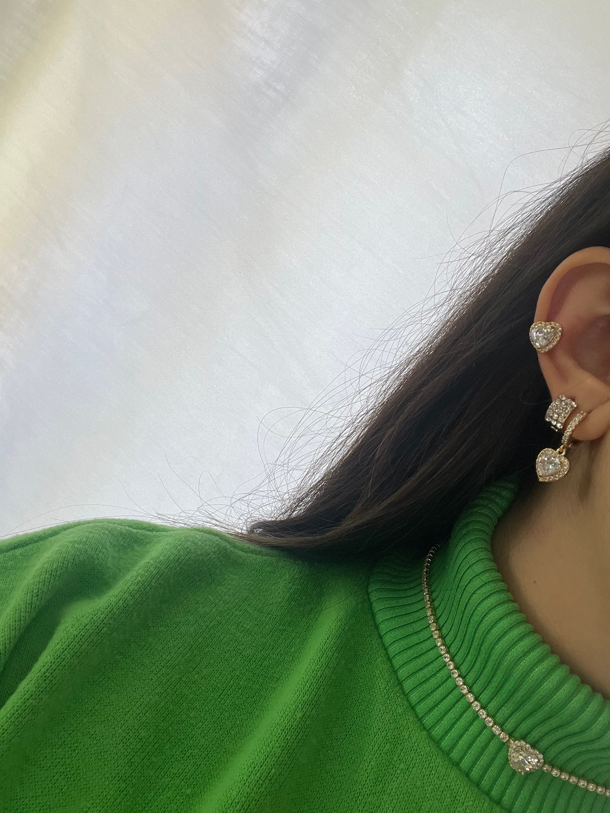 Orecchini diamantini dorati con cuoricino centrale bianco. Il set e composto da: