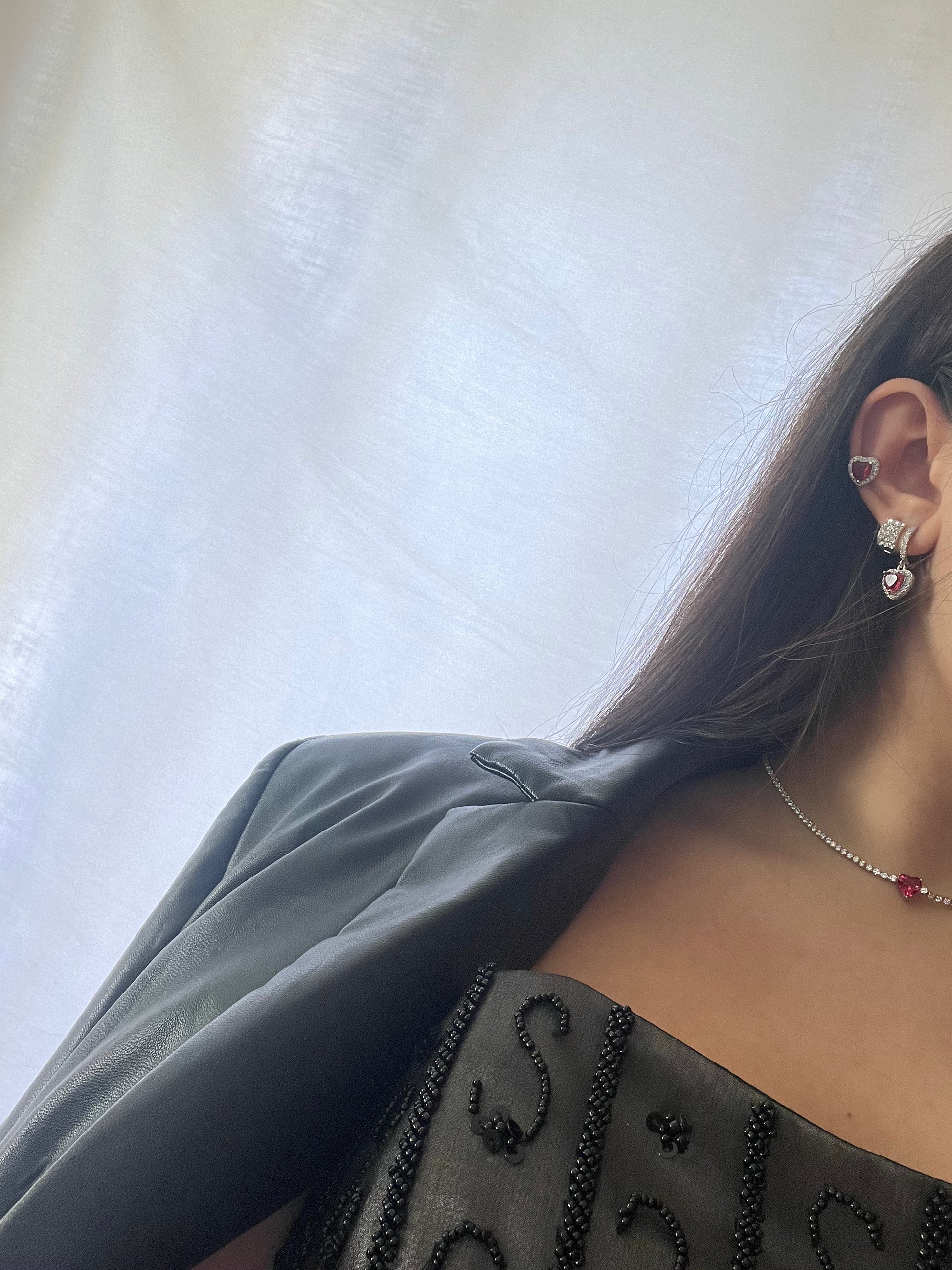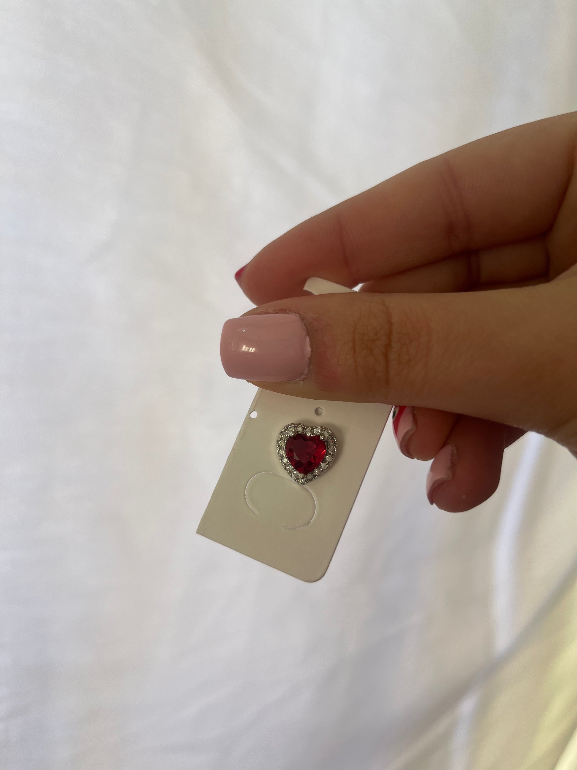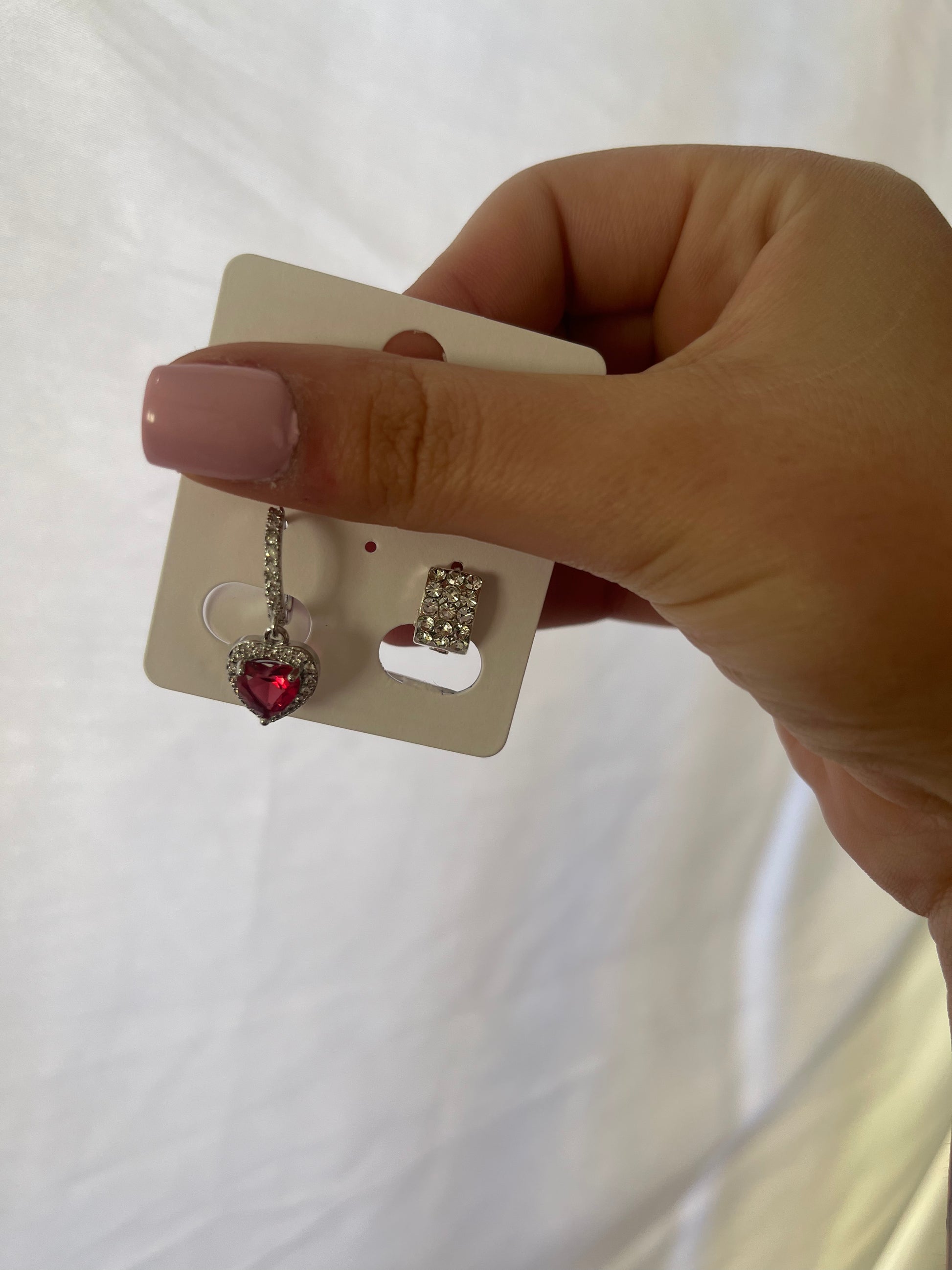 Orecchini diamantini fucsia con cuoricino centrale. Il set e composto da: