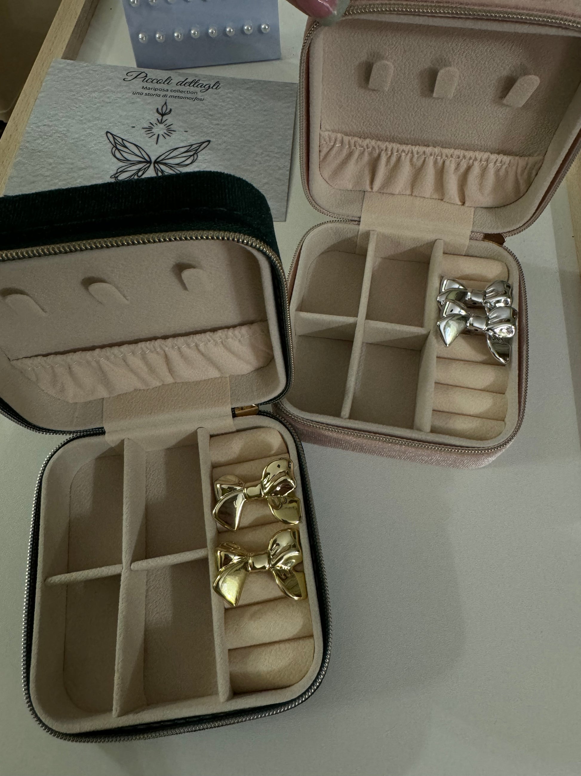 All’interno in omaggio un paio di orecchini Ribbon acciaio inossidabile (indicare nelle note se oro o argento o verrete contattate al numero whatsapp)