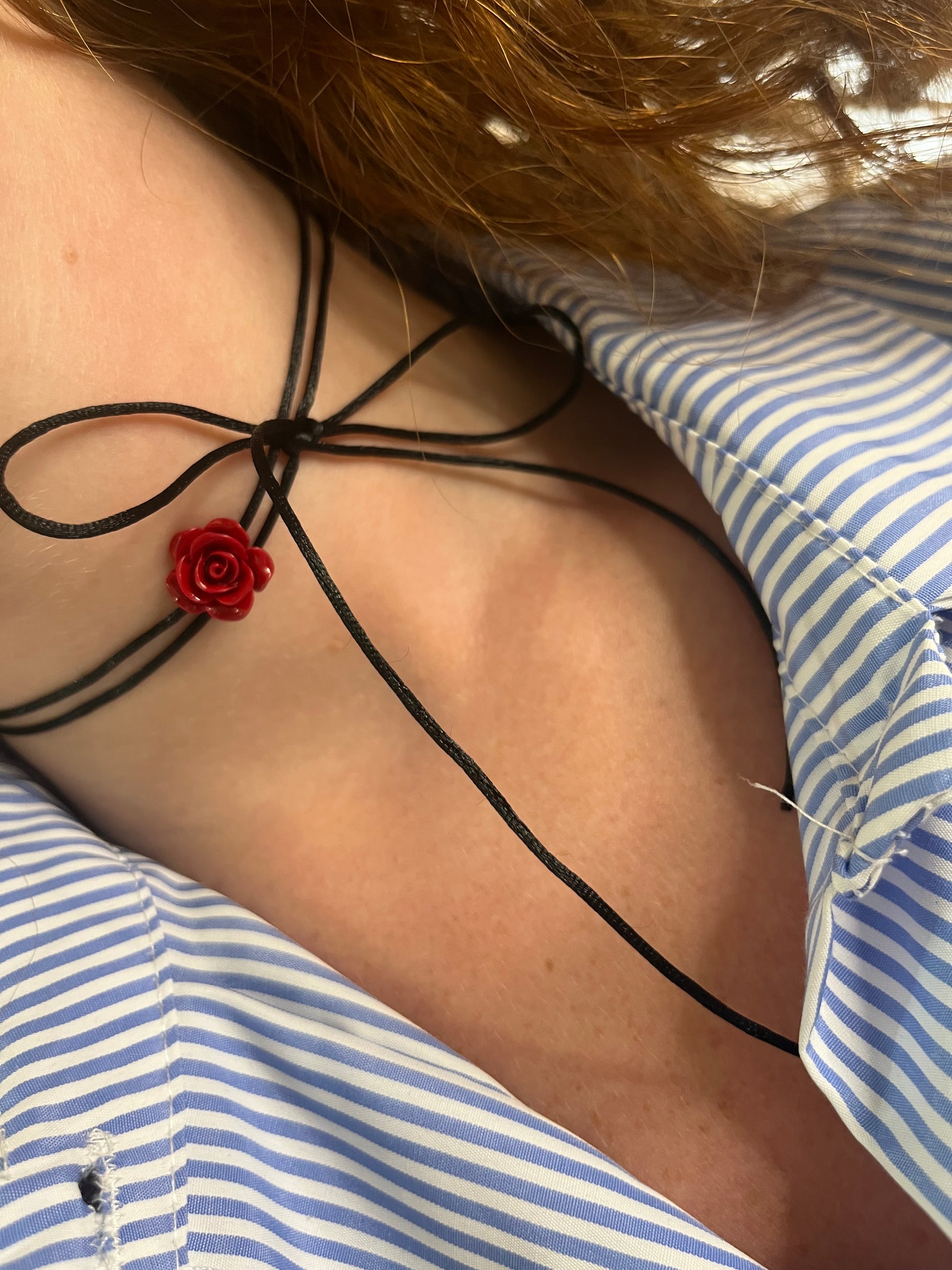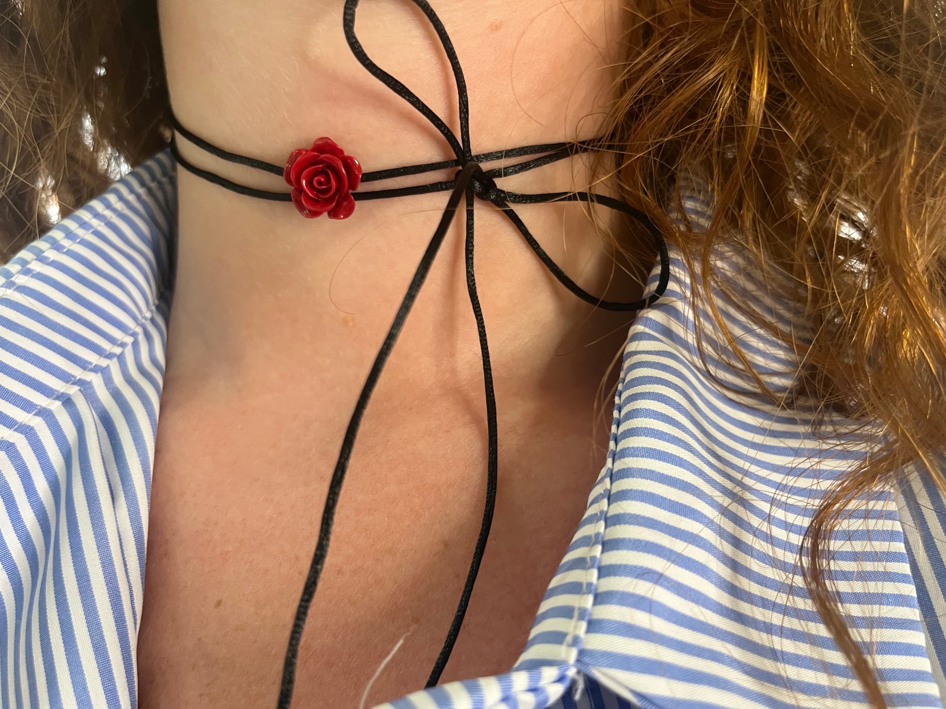 Choker La Rose - filo cerato con charm a forma di rosa rossa in resina